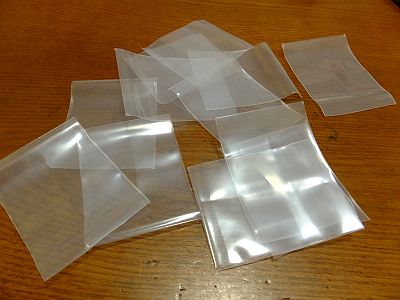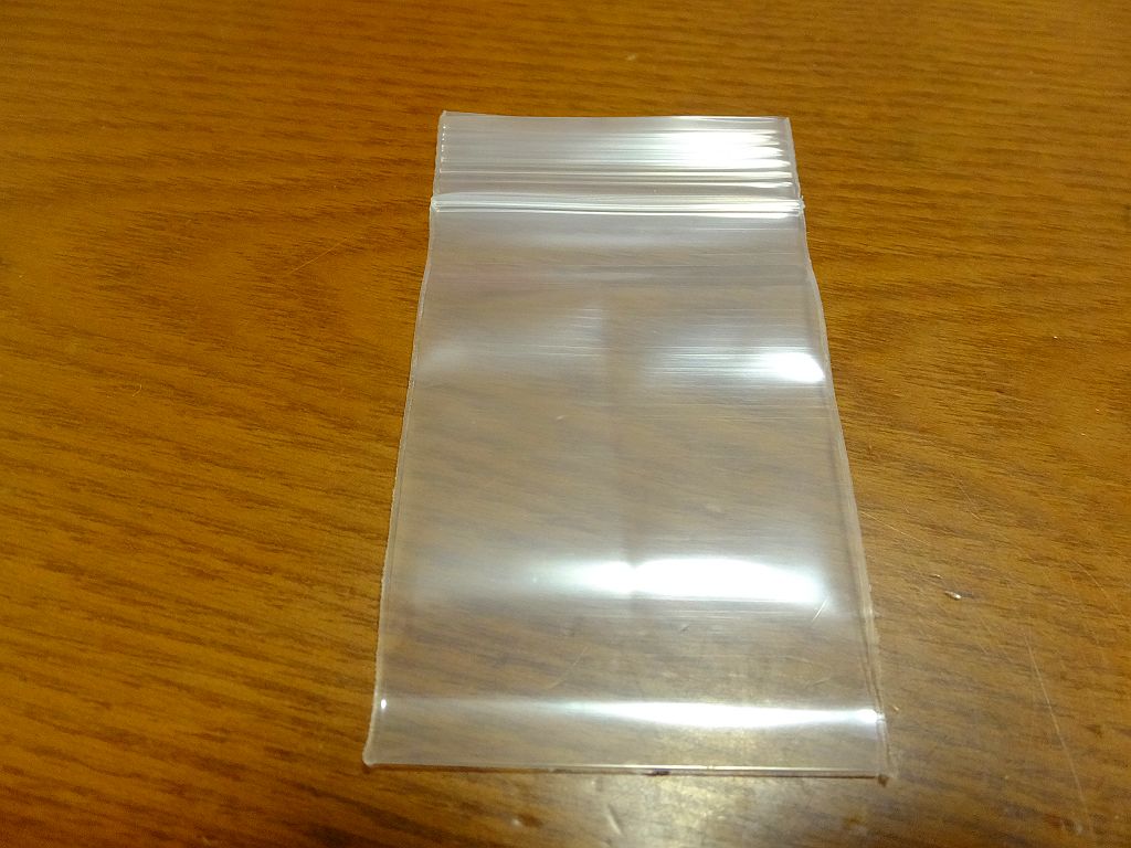 集めのチャック袋。メダルの横幅にマッチするのが幅50mm、高さ70mmのこの袋です。