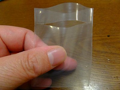 チャック袋の切り目を入れていない側に貼ります。幅広のタイプならばこんな感じです。