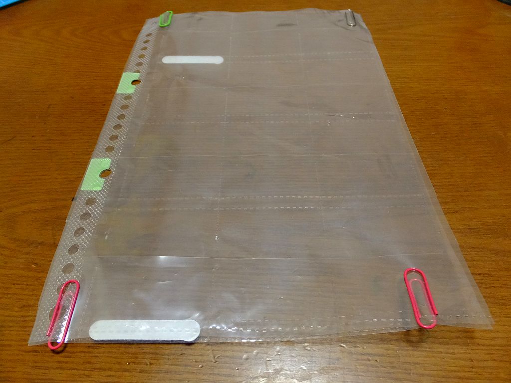 クリップなどを使って、妖怪ゲラポスティーニの収納ケースと、B5のクリアファイルをあわせます。