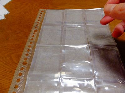 すべて貼り付け終われば、今度は、セロファンテープで隣同士のチャック袋をくっつけます。