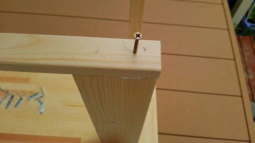 今回は、安定を確保するために奥の足に本をつなぐ木を横方向に付けました。