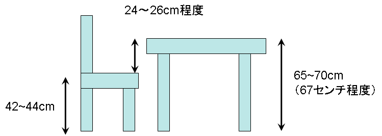 なお、椅子の高さは、概ね42〜44cm程度が多いです。