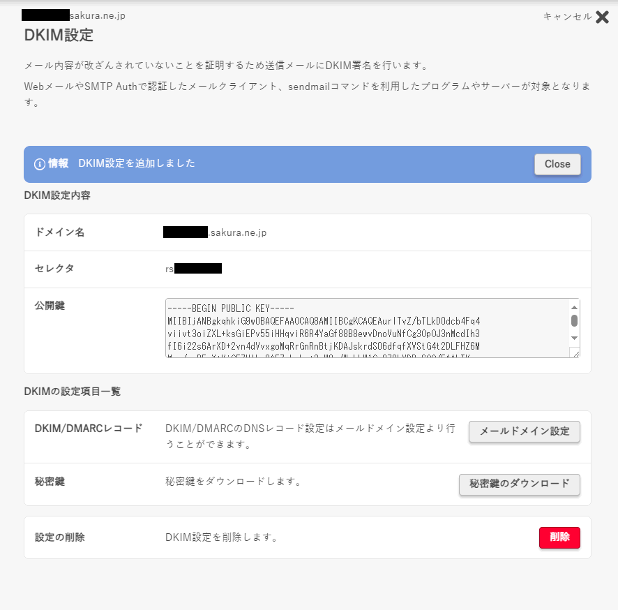 先ほどチェックできなかった「DKIM」の設定を行います。