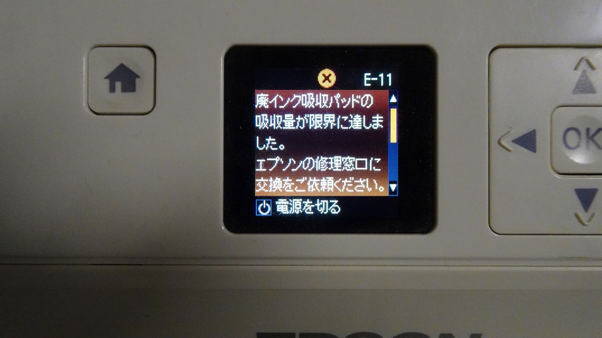 廃インクパッドの表示がでてしまうと、そのままではプリンタが使えなくなります。