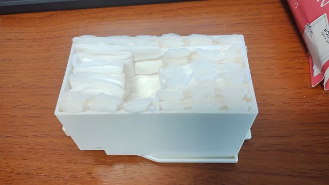 とりあえず、元々と同じような形状になるように詰め込んでみました。正直どれぐらい詰め込めば良いか、よくわからないのですが、結構詰め込んでみました。