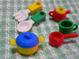 野菜やお菓子やラーメン、デザートなどのミニチュアで、字を消すことができる消しゴムを集めています。