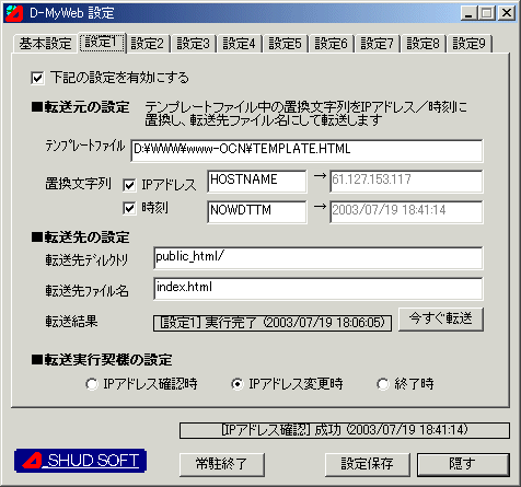 「IPアドレス確認周期」で確認した際に、IPアドレスの変更があった場合、実行します。